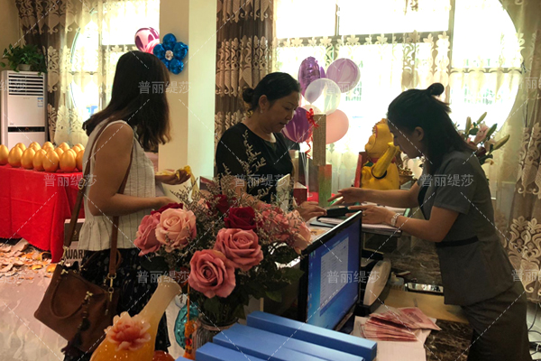 到了下午四五点,也依然有顾客陆陆续续的进店。为了迎接贵客,老板设置了许多有趣的活动,譬如签名墙和砸金蛋。只要是消费满五千元的顾客,都可以参加砸金蛋的活动,顾客们对于美容院的这些活动,参与性也很高。